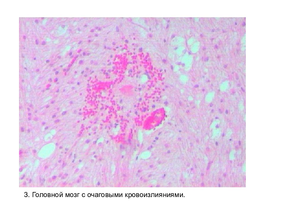 9. Крупозный бронхит. 1 – фибрин с нейтрофильными лейкоцитами, 2 – собственная пластинка слизистой без эпителия, инфильтрированная лейкоцитами, 3 – хрящ. 1 2 3