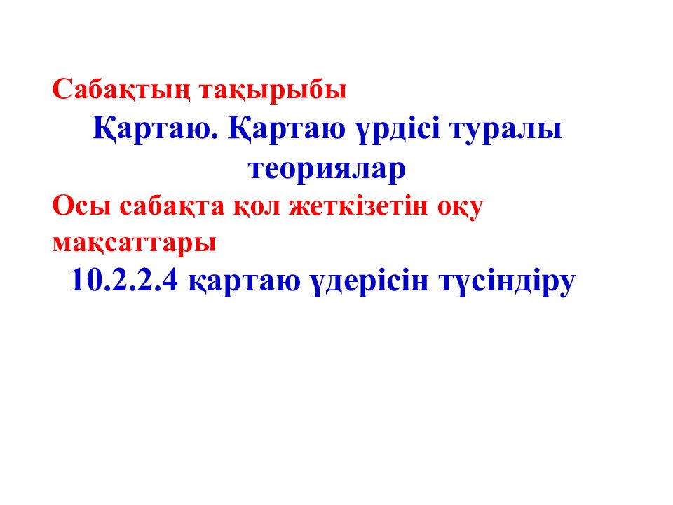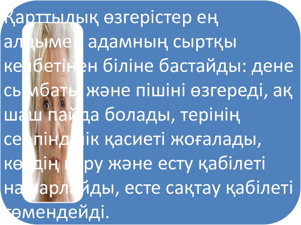 Сабақтың тақырыбы Қартаю. Қартаю үрдісі туралы теориялар Осы сабақта қол жеткізетін оқу мақсаттары 10.2.2.4 қартаю үдерісін түсіндіру