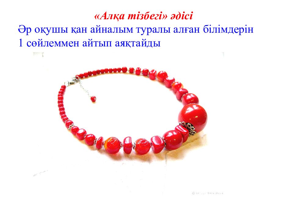 «Алқа тізбегі» әдісі Әр оқушы қан айналым туралы алған білімдерін 1 сөйлеммен айтып аяқтайды