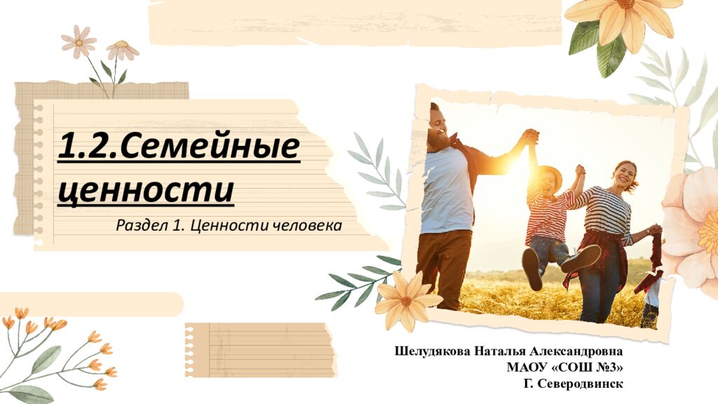 Раздел 1. Ценности человека Шелудякова Наталья Александровна МАОУ «СОШ №3» Г. Северодвинск