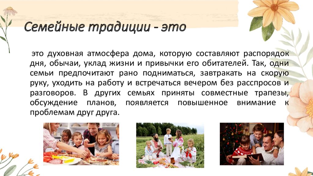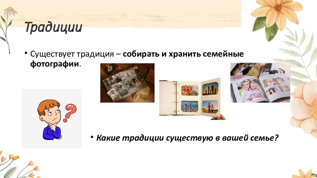 Существует традиция – собирать и хранить семейные фотографии. Какие традиции существую в вашей семье ?
