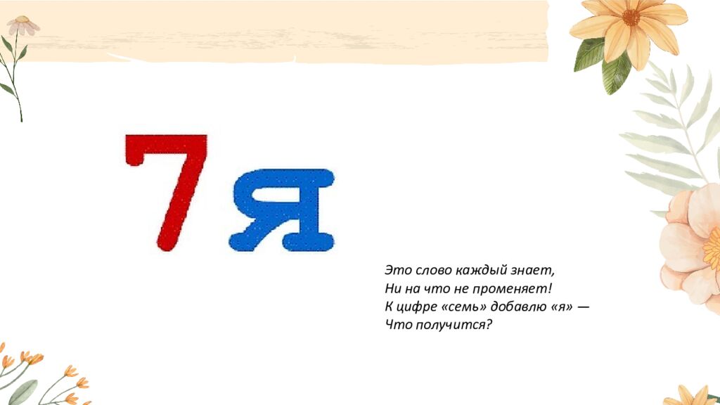 Это слово каждый знает, Ни на что не променяет! К цифре «семь» добавлю «я» — Что получится?