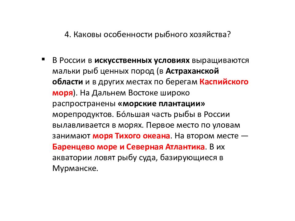 Последний слайд презентации: 14 Сельское хозяйство. Животноводство: 4. Каковы особенности рыбного хозяйства?