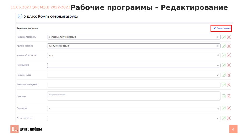 12 Дополнительное образование При создании УП «с нуля» все предметы и часы по предметам вносятся. Предметы с дисциплинами: Иностранный язык НОО, ООО, СОО (в дисциплинах указываем ОРКСЭ для 4-х классов (указать внутри предмета изучаемые дисциплины) 11.05.2023 ЭЖ МЭШ 2022-2023