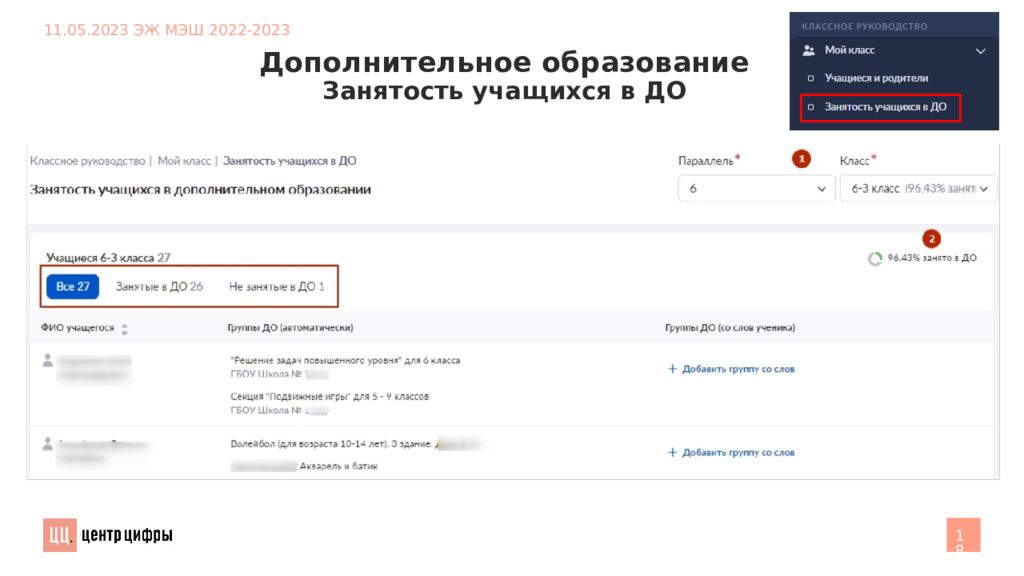 Дополнительное образование Занятость учащихся в ДО 18 11.05.2023 ЭЖ МЭШ 2022-2023