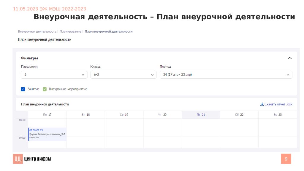 10 Внеурочная деятельность – План внеурочной деятельности - Отчет 11.05.2023 ЭЖ МЭШ 2022-2023