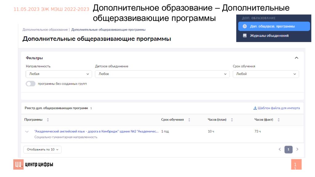 11 11.05.2023 ЭЖ МЭШ 2022-2023 Дополнительное образование – Дополнительные общеразвивающие программы