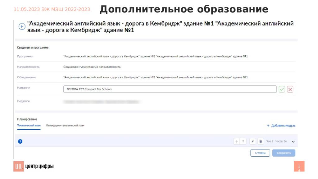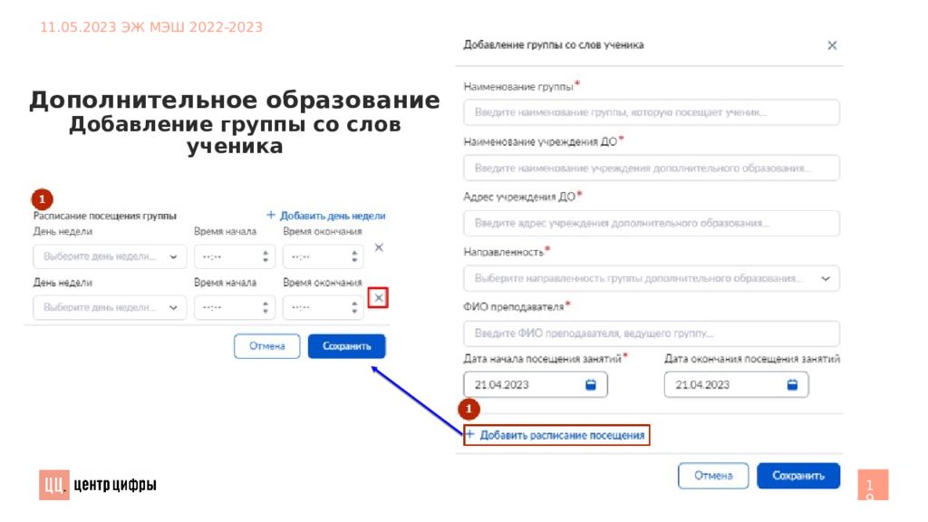 Дополнительное образование Добавление группы со слов ученика 19 11.05.2023 ЭЖ МЭШ 2022-2023