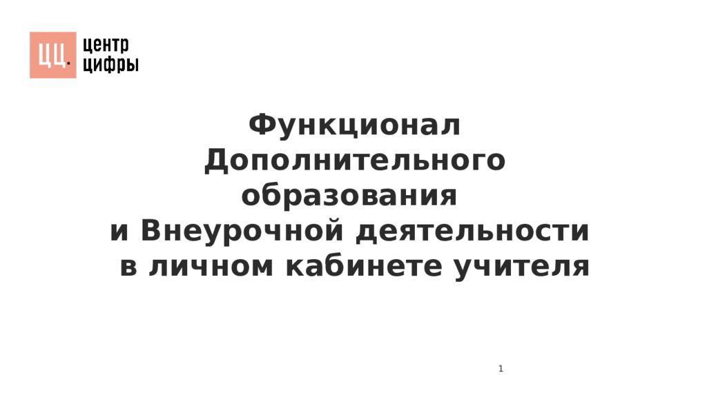 Последний слайд презентации: 1 Функционал Дополнительного образования и Внеурочной деятельности в личном