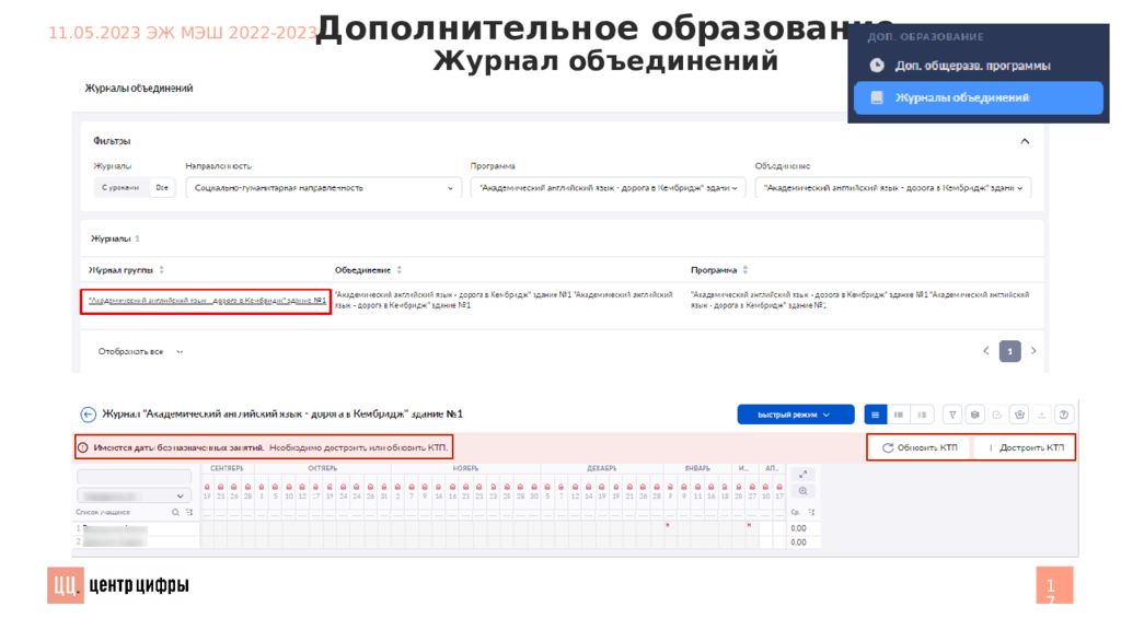 Дополнительное образование Журнал объединений 17 11.05.2023 ЭЖ МЭШ 2022-2023