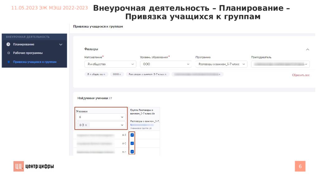 6 Внеурочная деятельность – Планирование – Привязка учащихся к группам 11.05.2023 ЭЖ МЭШ 2022-2023