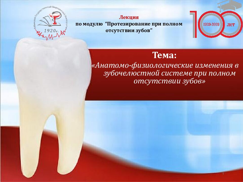 1 Лекция по модулю “ Протезирование при полном отсутствии зубов ” Тема : « Анат о мо-физиологические изменения в зубочелюстной системе при полном отсутствии зубов »