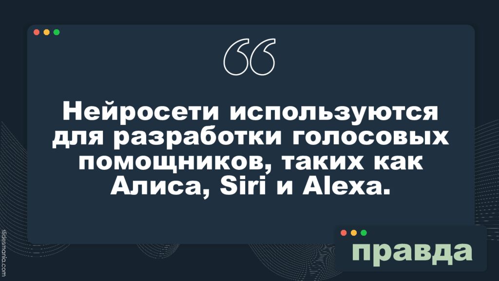 Нейросети используются для разработки голосовых помощников, таких как Алиса, Siri и Alexa.