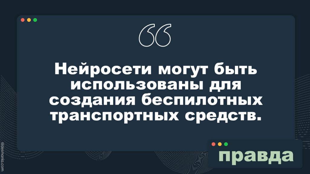 Нейросети могут быть использованы для создания автономных транспортных средств.