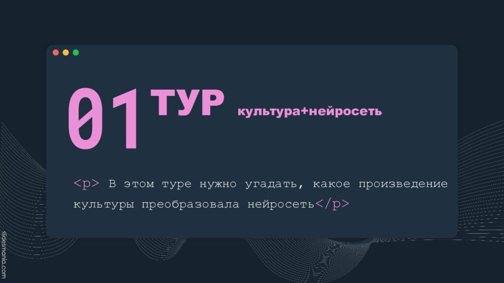 <p> В этом туре нужно угадать, какое произведение культуры преобразовала нейросеть </p> ТУР культура+нейросеть