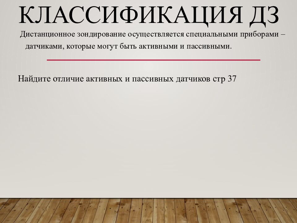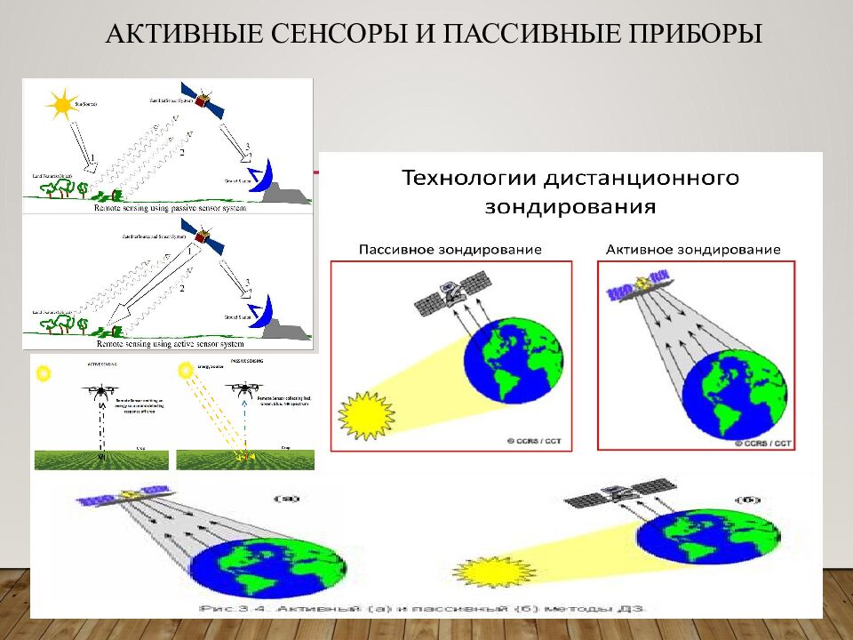 Дистанционное зондирование осуществляется специальными приборами – датчиками, которые могут быть активными и пассивными. Найдите отличие активных и пассивных датчиков стр 37