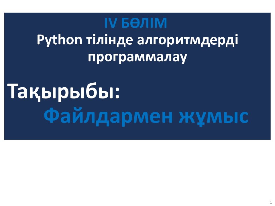 1 Тақырыбы : Файлдармен ж ұмыс IV БӨЛІМ Python тілінде алгоритмдерді программалау