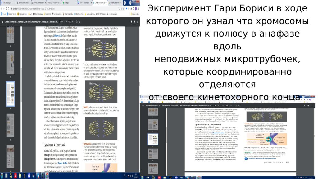 Эксперимент Гари Бориси в ходе которого он узнал что хромосомы движутся к полюсу в анафазе вдоль неподвижных микротрубочек, которые координированно отделяются от своего кинетохорного конца