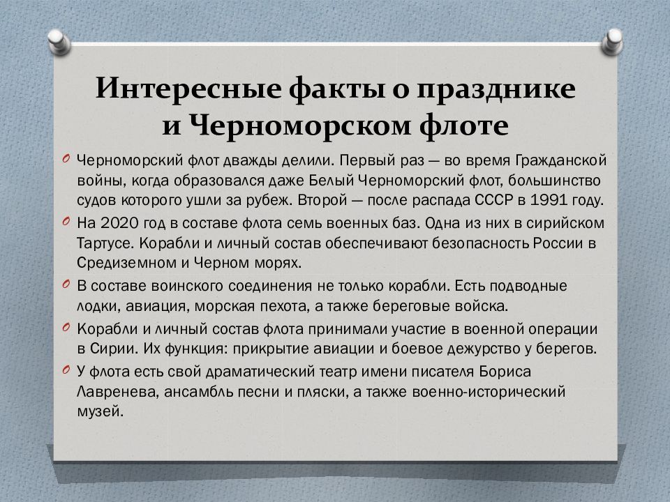 Слайд 12: Интересные факты о празднике и Черноморском флоте