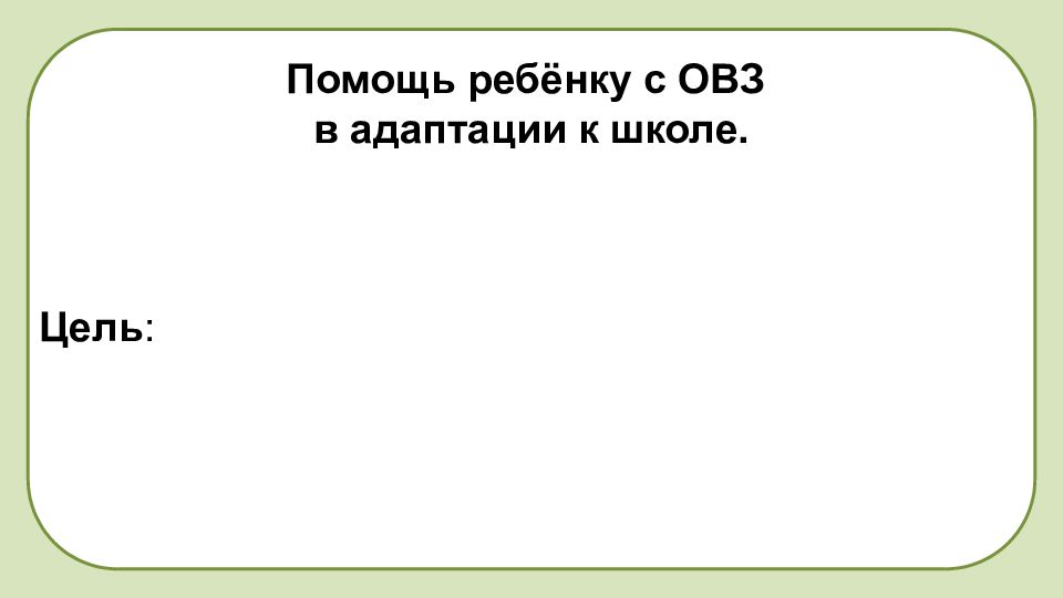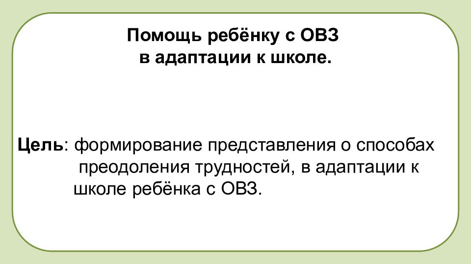 Помощь ребёнку с ОВЗ в адаптации к школе. Цель : формирование представления о способах преодоления трудностей, в адаптации к школе ребёнка с ОВЗ.