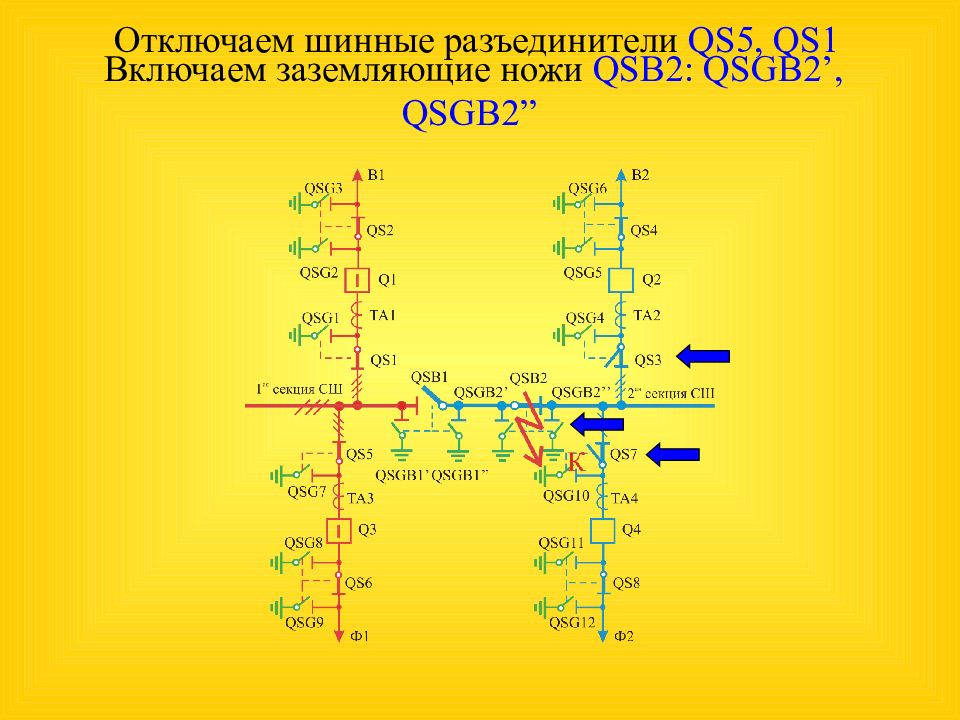 Слайд 14: Отключаем шинные разъединители QS5, QS1