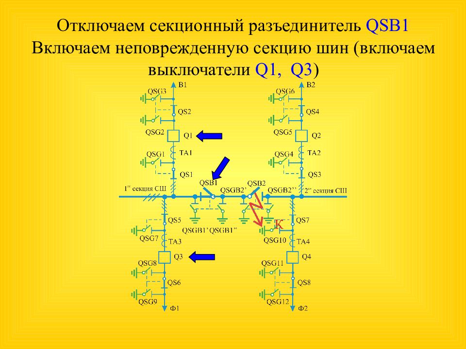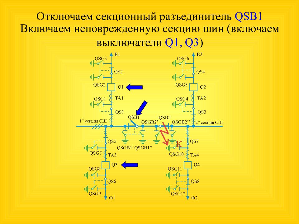 Слайд 13: Отключаем секционный разъединитель QSB 1
