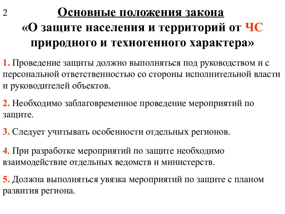 Слайд 2: Основные положения закона «О защите населения и территорий от ЧС природного и техногенного характера»