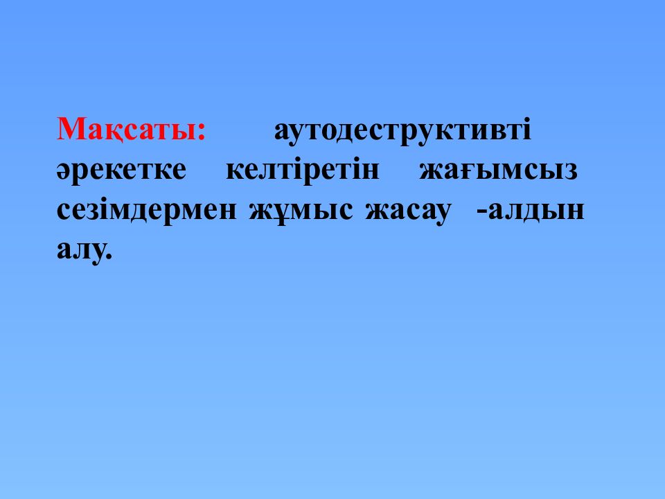 Мақсаты : аутодеструктивті әрекетке келтіретін жағымсыз сезімдермен жұмыс жасау - алдын алу.