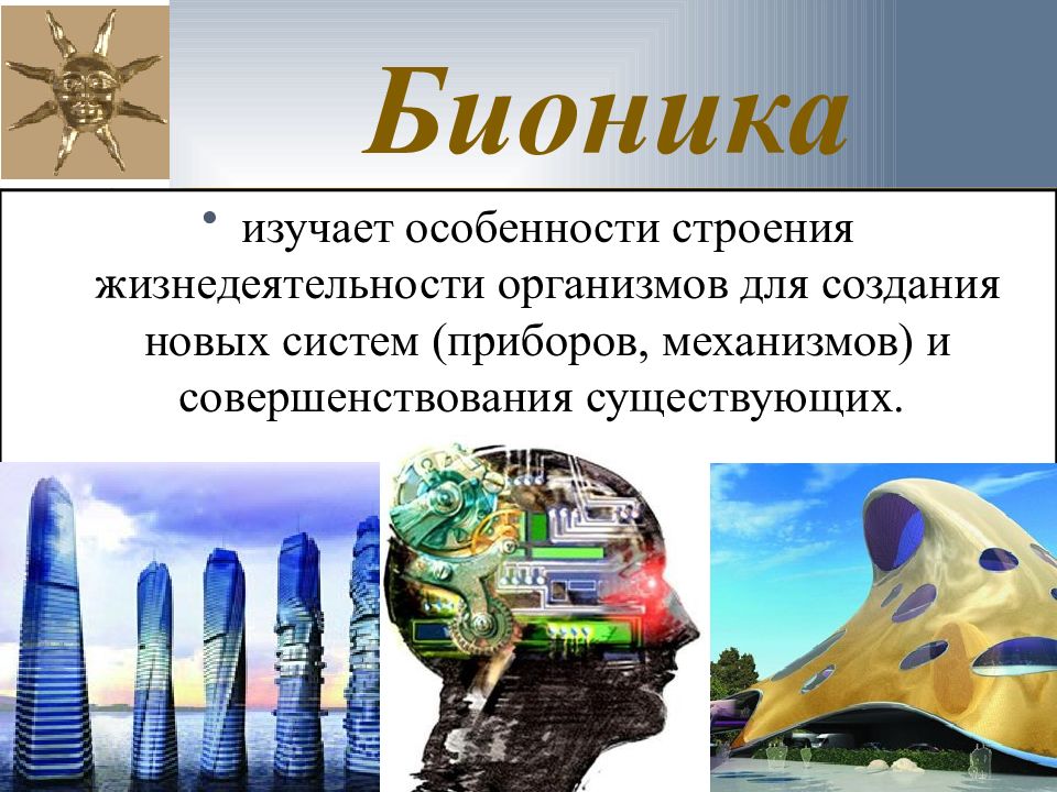изучает особенности строения жизнедеятельности организмов для создания новых систем (приборов, механизмов) и совершенствования существующих.