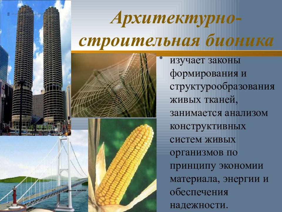 изучает законы формирования и структурообразования живых тканей, занимается анализом конструктивных систем живых организмов по принципу экономии материала, энергии и обеспечения надежности.