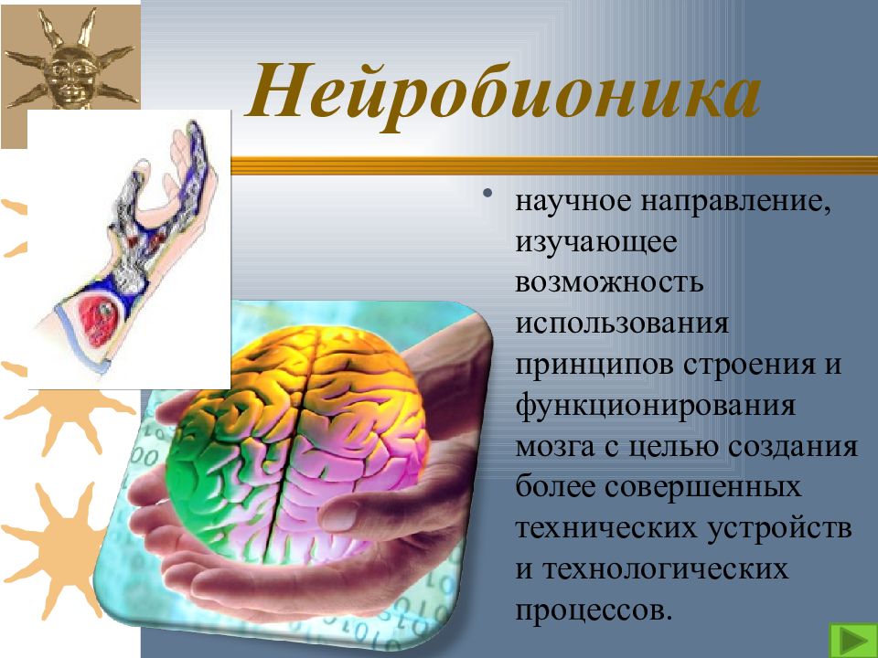 научное направление, изучающее возможность использования принципов строения и функционирования мозга с целью создания более совершенных технических устройств и технологических процессов.