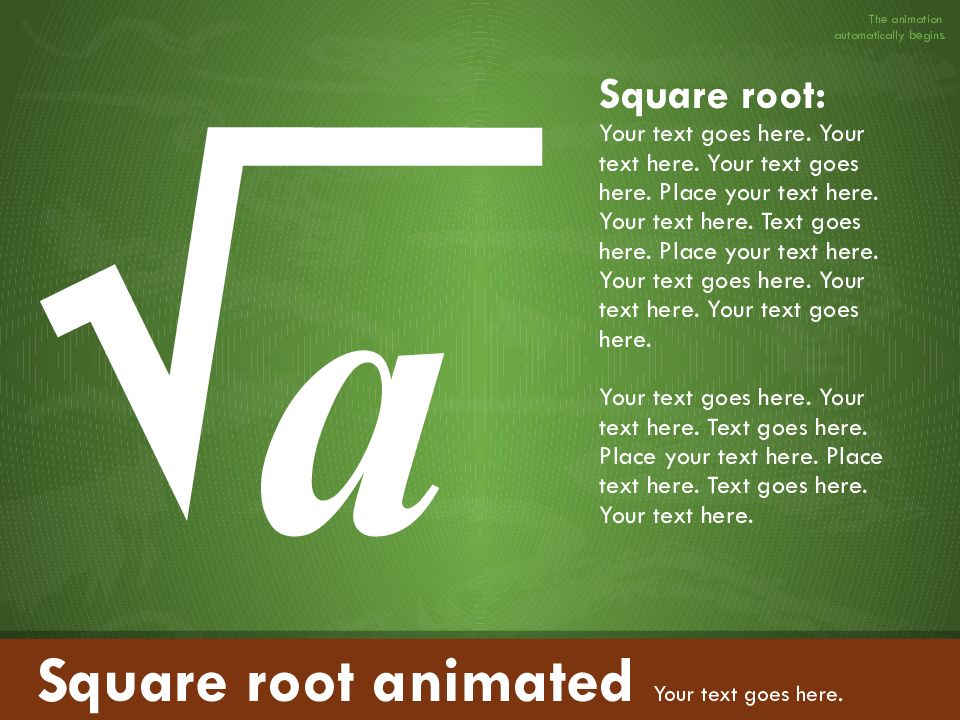 Square root animated Your text goes here. a Square root: Your text goes here. Your text here. Your text goes here. Place your text here. Your text here. Text goes here. Place your text here. Your text goes here. Your text here. Your text goes here. Your text goes here. Your text here. Text goes here. Place your text here. Place text here. Text goes here. Your text here. The animation automatically begins.