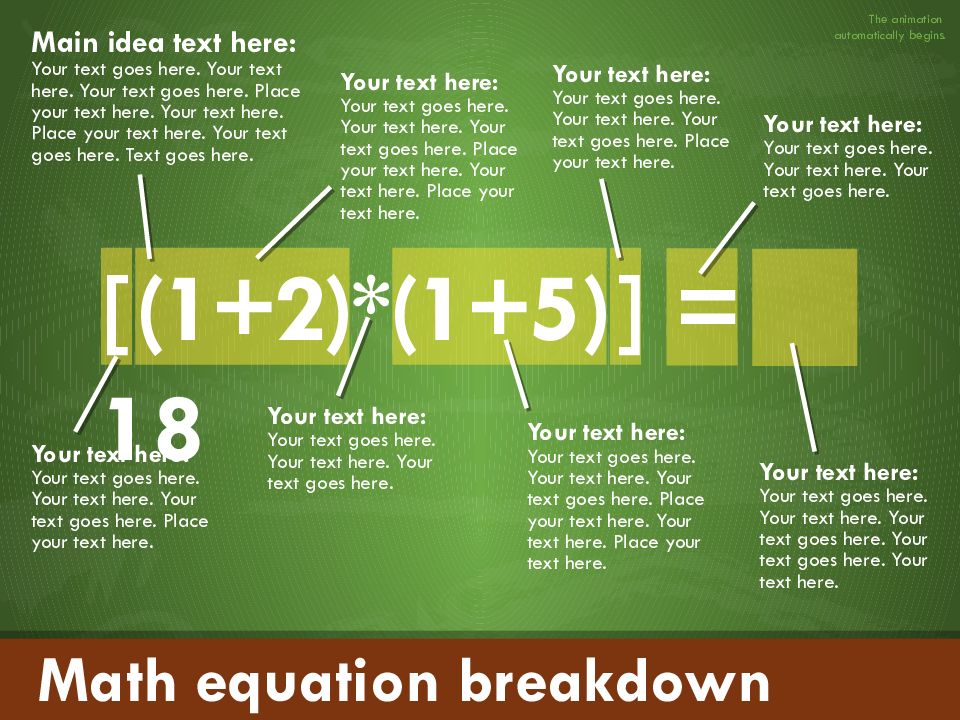 Math equation breakdown [ (1+2)*(1+5 )] = 1 8 Your text here: Your text goes here. Your text here. Your text goes here. Place your text here. Your text here. Place your text here. Your text here: Your text goes here. Your text here. Your text goes here. Place your text here. Your text here. Place your text here. Your text here: Your text goes here. Your text here. Your text goes here. Your text here: Your text goes here. Your text here. Your text goes here. Place your text here. Your text here: Your text goes here. Your text here. Your text goes here. Place your text here. Main idea text here: Your text goes here. Your text here. Your text goes here. Place your text here. Your text here. Place your text here. Your text goes here. Text goes here. Your text here: Your text goes here. Your text here. Your text goes here. Your text here: Your text goes here. Your text here. Your text goes here. Your text goes here. Your text here. The animation automatically begins.