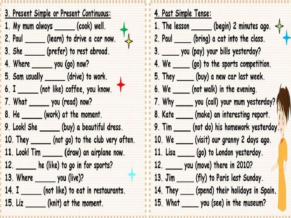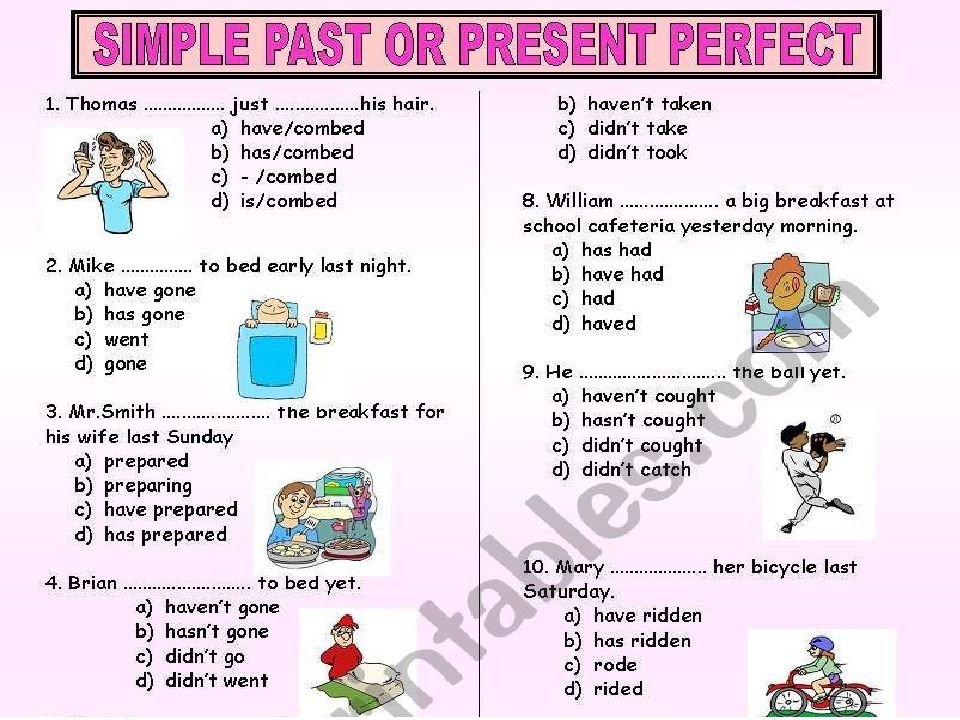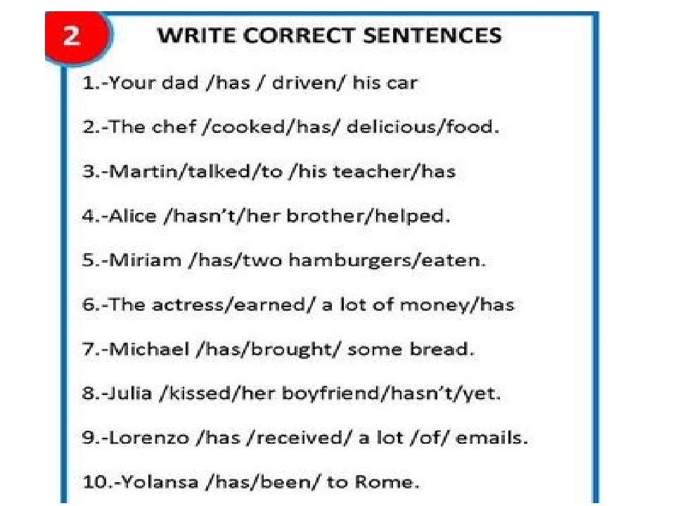 Has your father payed the bill? Has Peter lost his keys? Has Susan come back? Have you heard about Mary? Has everybody gone home? What has John told his teacher? Where have your neighbours gone?