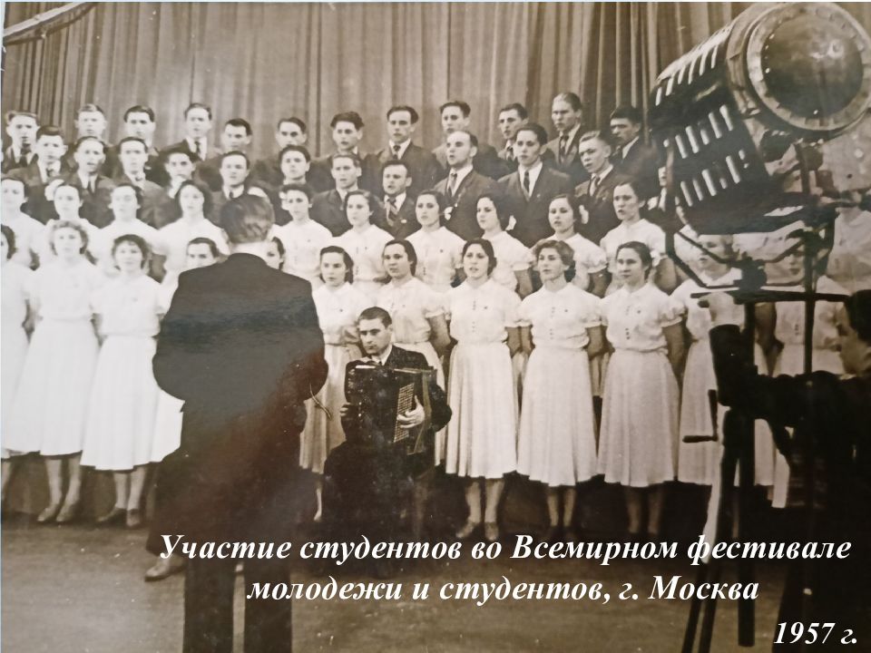 1957 г. Участие студентов во Всемирном фестивале молодежи и студентов, г. Москва
