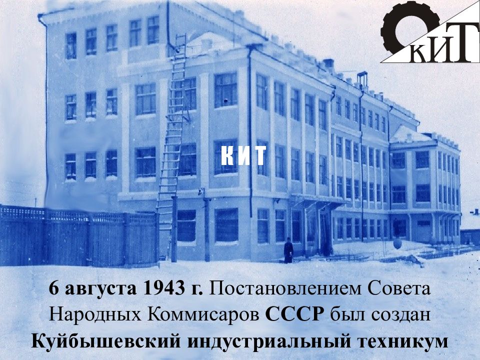 К И Т Куйбышевский индустриальный техникум 6 августа 1943 г. Постановлением Совета Народных Коммисаров СССР был создан