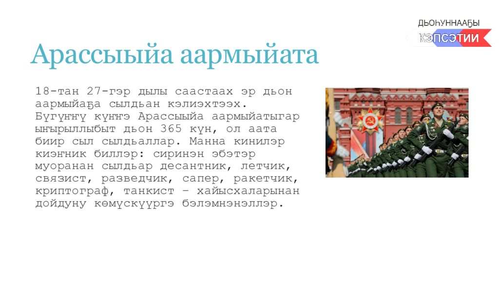 Слайд 4: Арассыыйа аармыйата