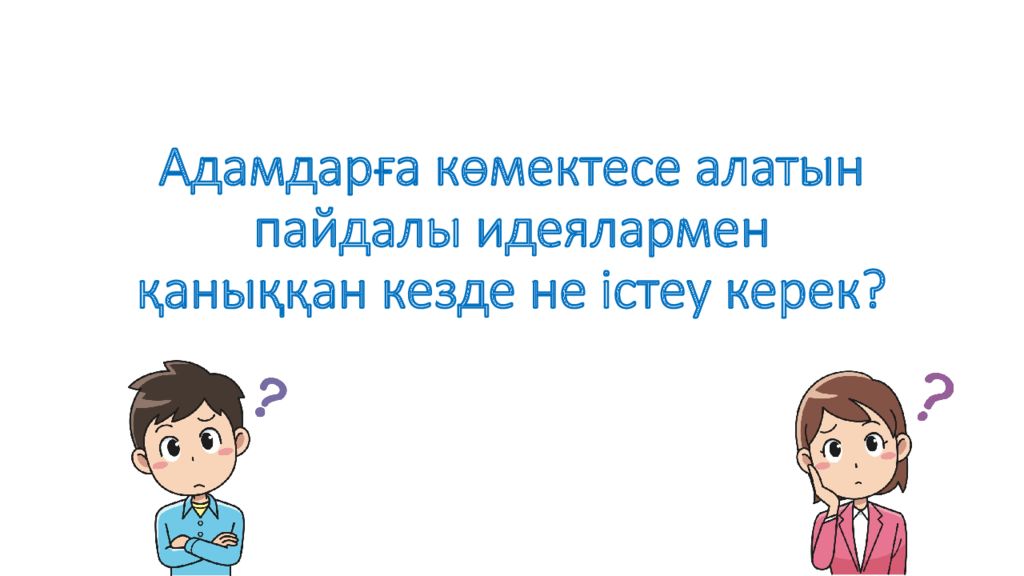 Первый слайд презентации: Адамдарға көмектесе алатын пайдалы идеялармен қаныққан кезде не істеу керек ?