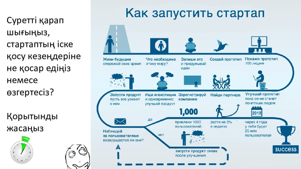 Суретті қарап шығыңыз, стартаптың іске қосу кезеңдеріне не қосар едіңіз немесе өзгертесіз ? Қорытынды жасаңыз