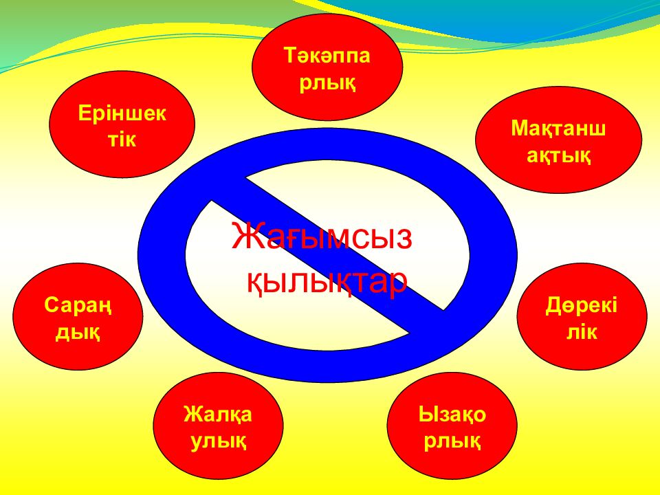 Жағымсыз қылықтар Сараңдық Ызақорлық Еріншектік Тәкәппарлық Мақтаншақтық Дөрекілік Жалқаулық
