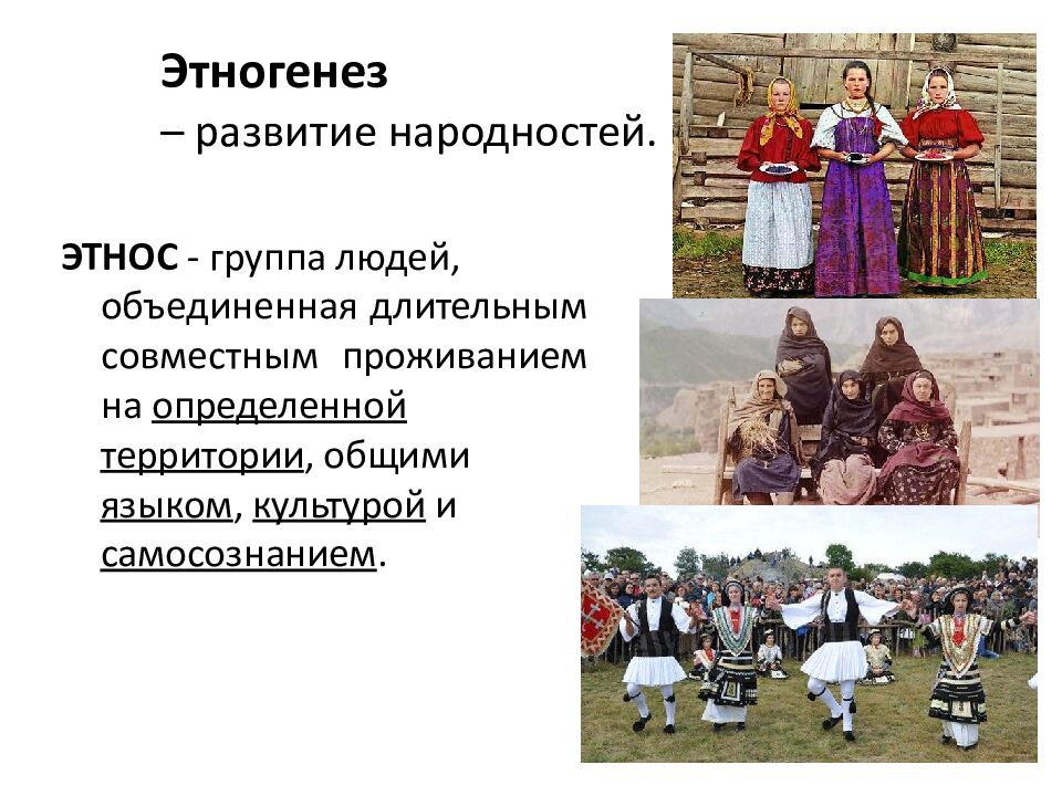 ЭТНОС - группа людей, объединенная длительным совместным проживанием на определенной территории, общими языком, культурой и самосознанием.