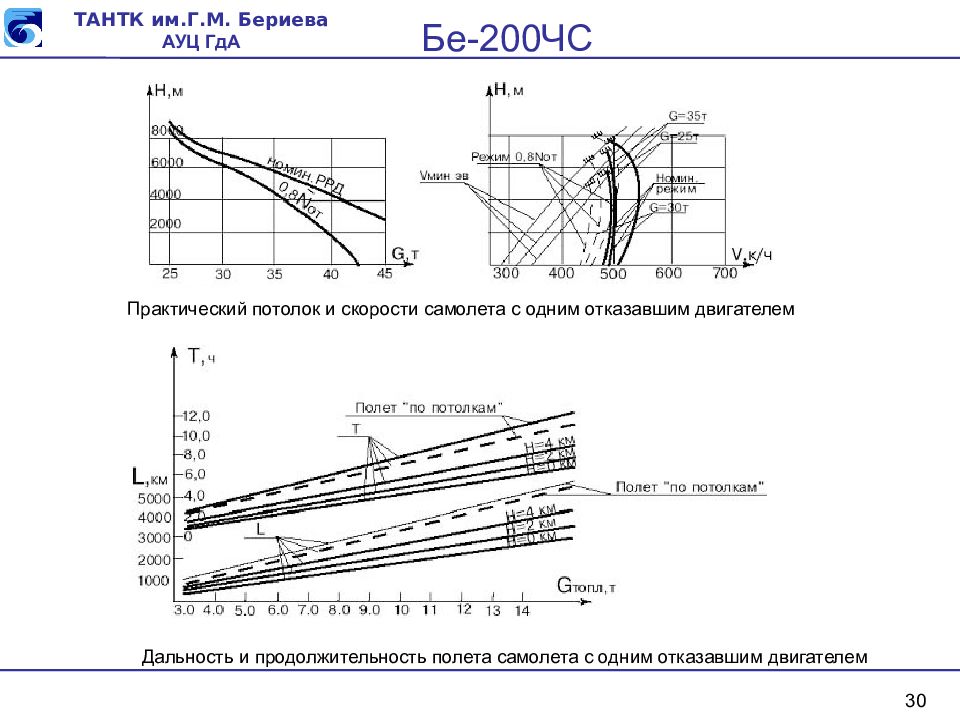 30 Практический потолок и скорости самолета с одним отказавшим двигателем Дальность и продолжительность полета самолета с одним отказавшим двигателем