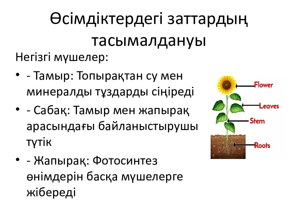 Слайд 5: Өсімдіктерде заттардың қозғалысы