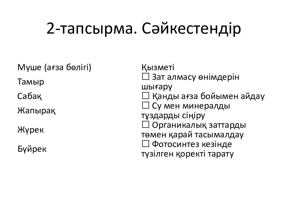 Слайд 11: 2- тапсырма. Сәйкестендір