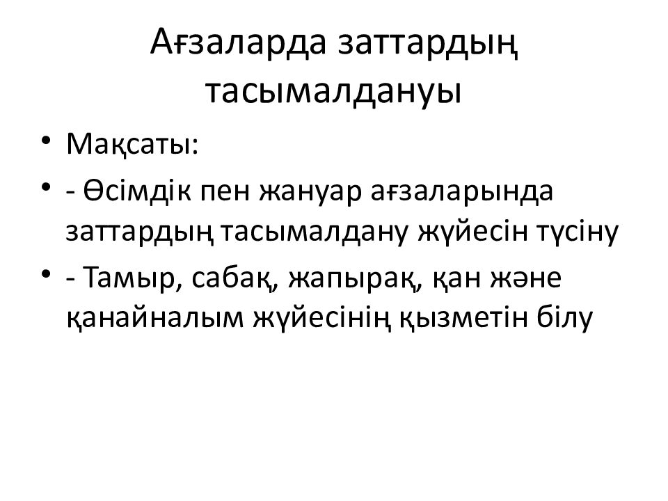Первый слайд презентации: Ағзаларда заттардың тасымалдануы