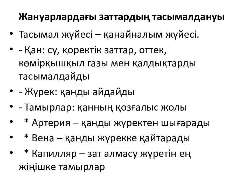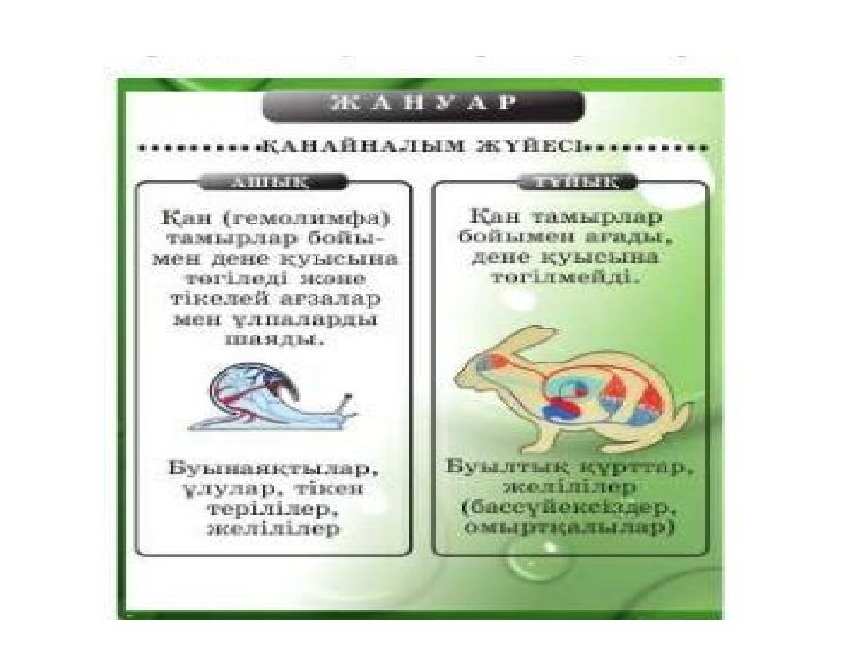 Слайд 6: Жануарлардағы заттардың тасымалдануы