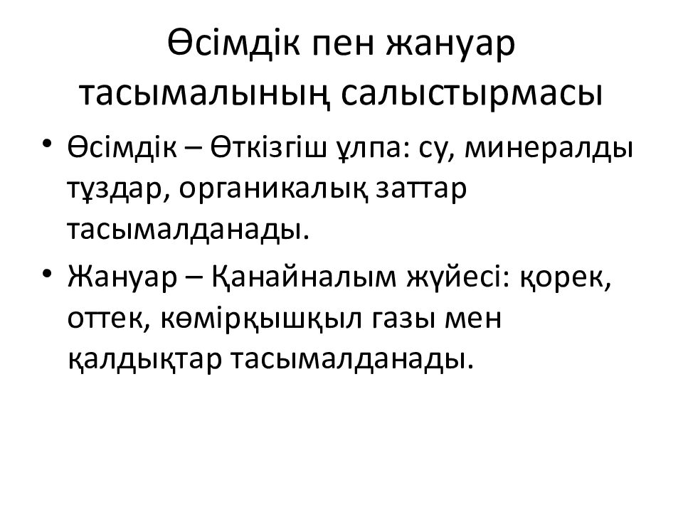 Слайд 9: Өсімдік пен жануар тасымалының салыстырмасы