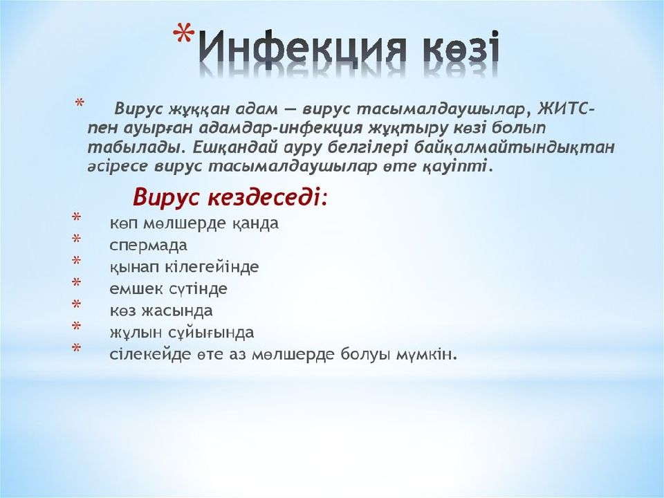 Первый слайд презентации: АИТВ ( адамның иммун тапшылық вирусы) инфекциясы