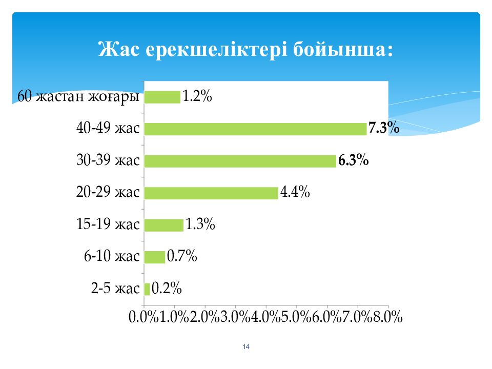 10 Қазақстан Республикасында 2020 жылдың 12 айында АИТВ-инфекциясының 3342 жағдай тіркелген, 100 мың халыққа шаққандағы көрсеткіш – 17,9 (2019 жылдың 12 айында - 2034, 100 мың халыққа – 15,5). Өткен жылдың ұқсас кезеңімен салыстырғанда обылс бойынша 57 жағдайға төмендеуі байқалады, төмендеу - 2,8% құрайды.