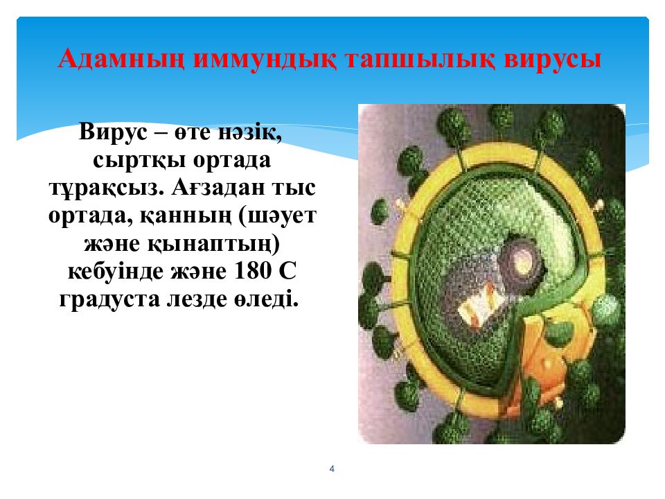 Слайд 4: Адамның иммундық тапшылық вирусы